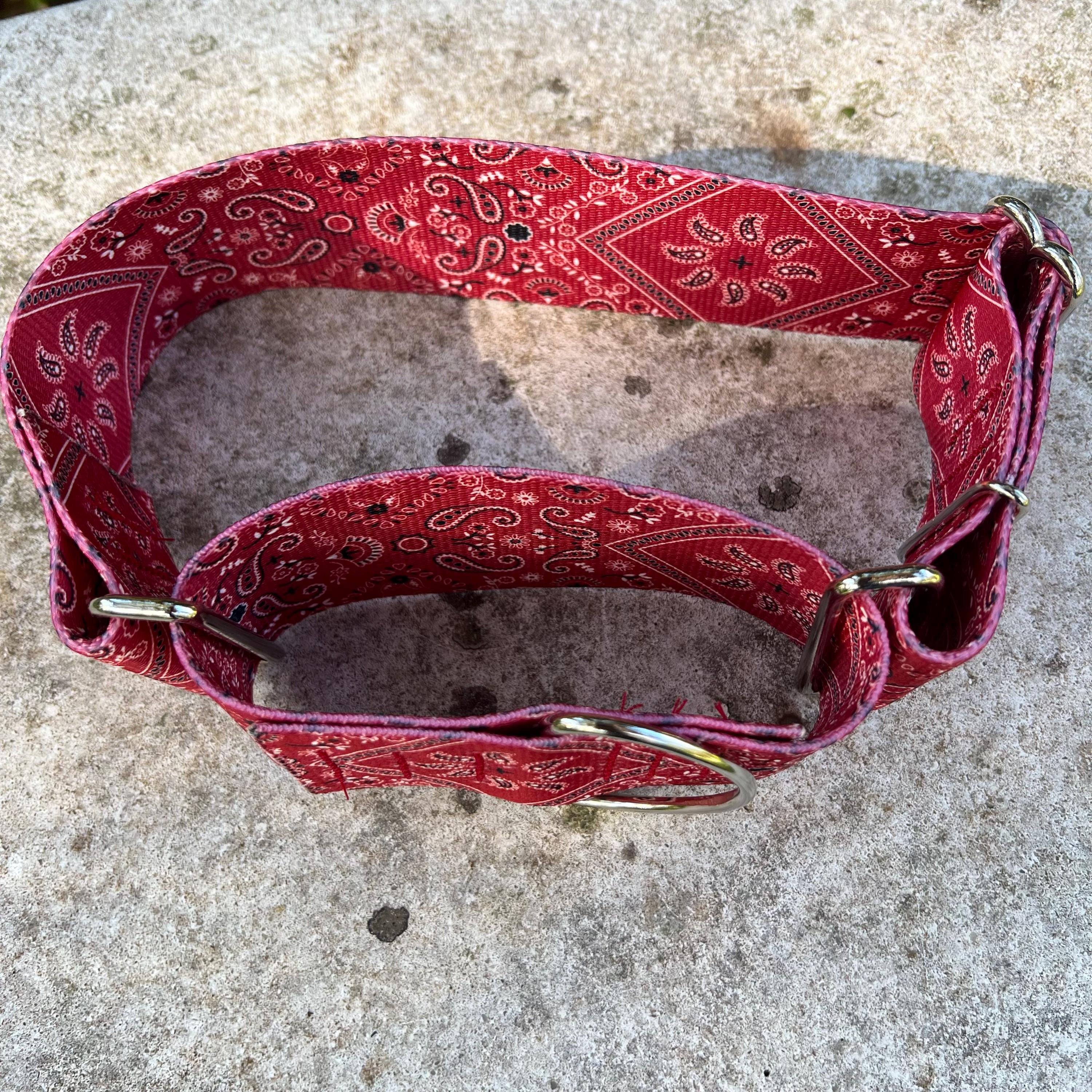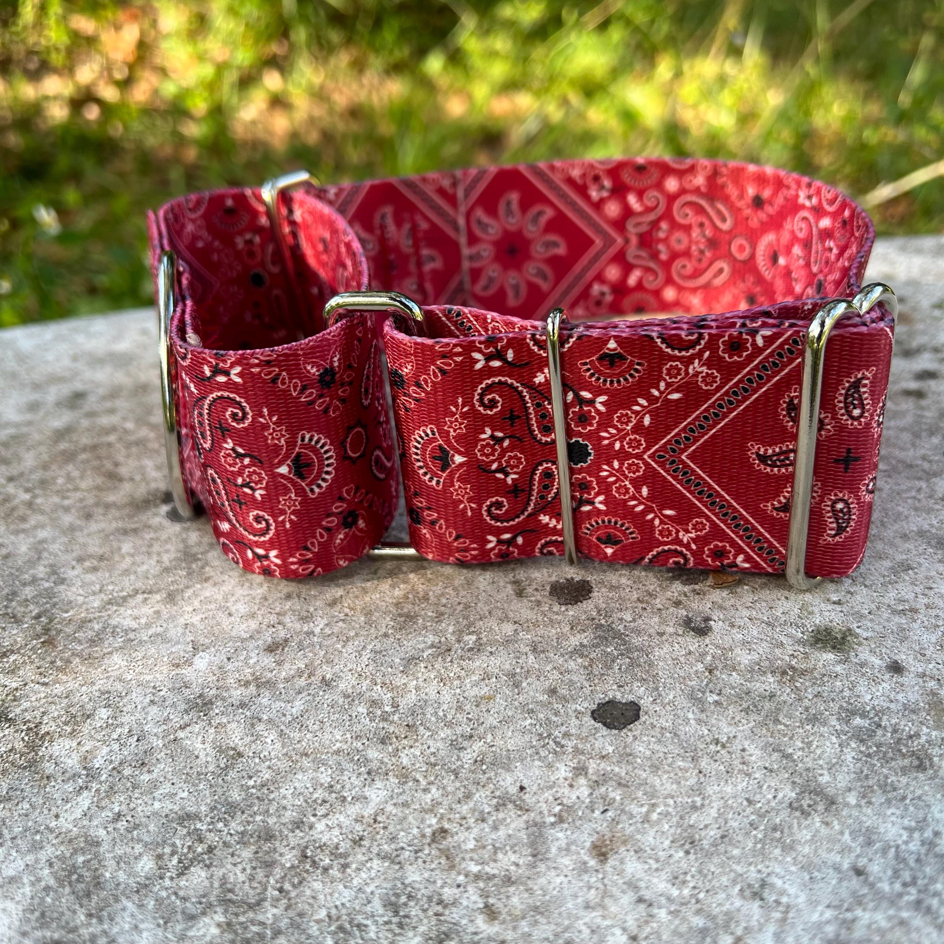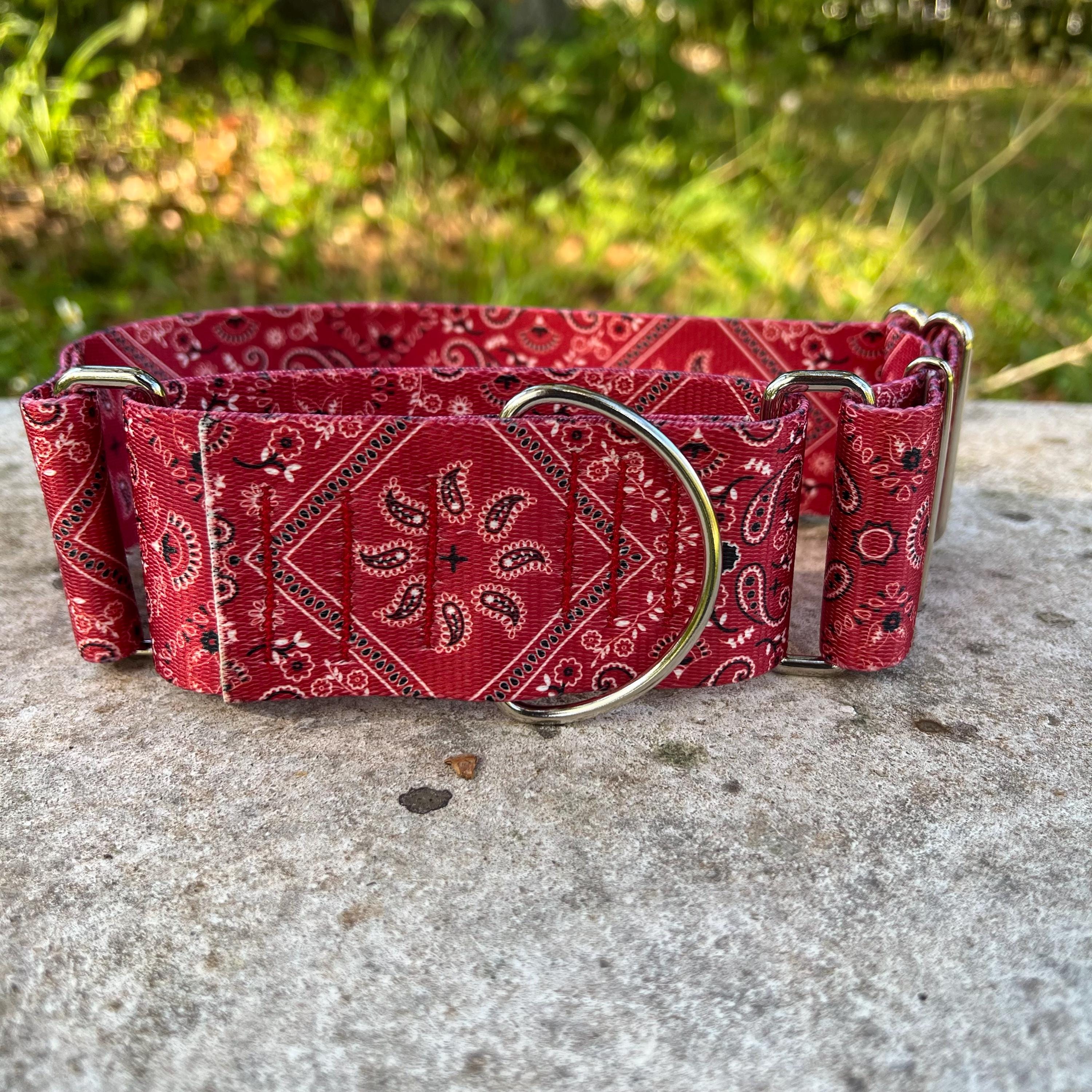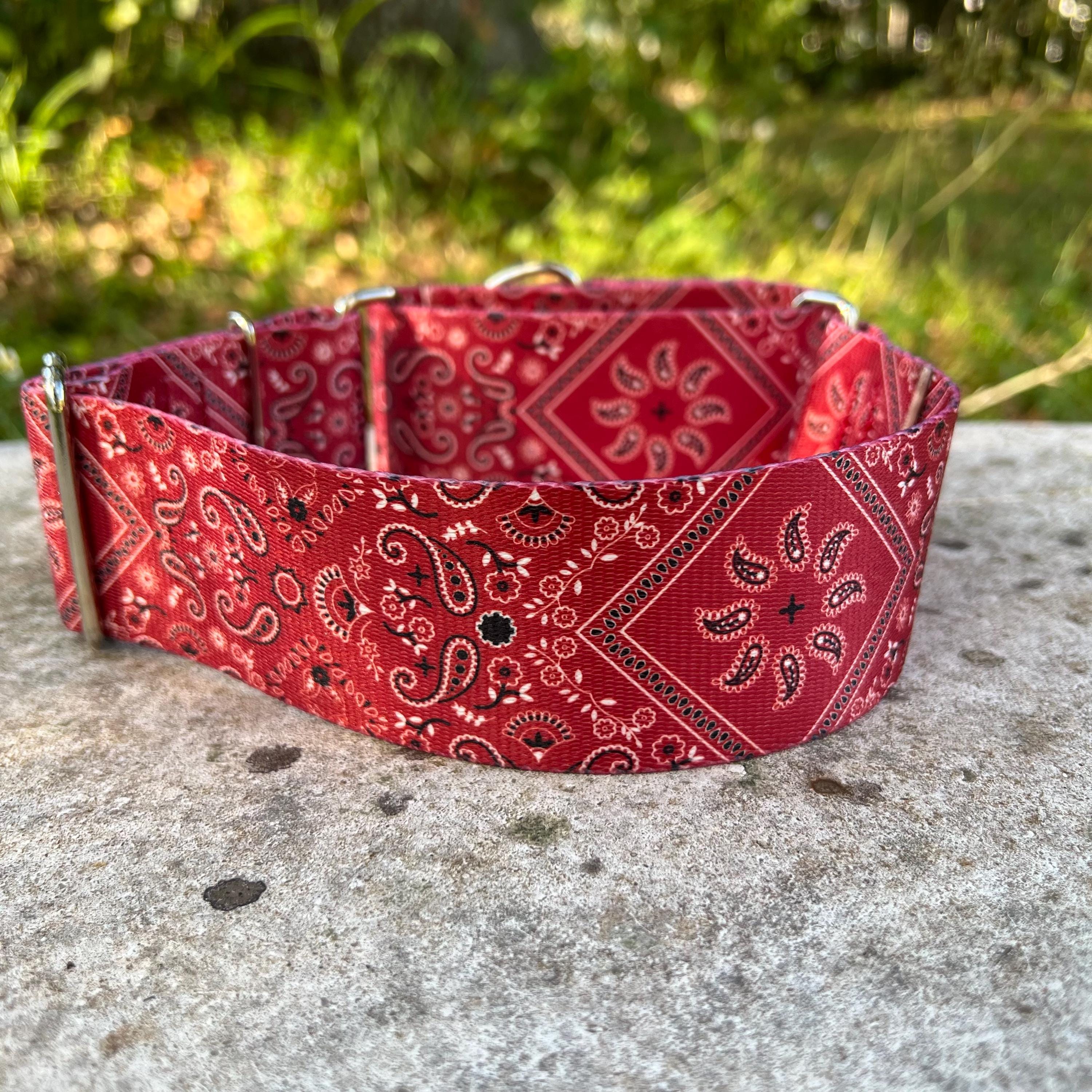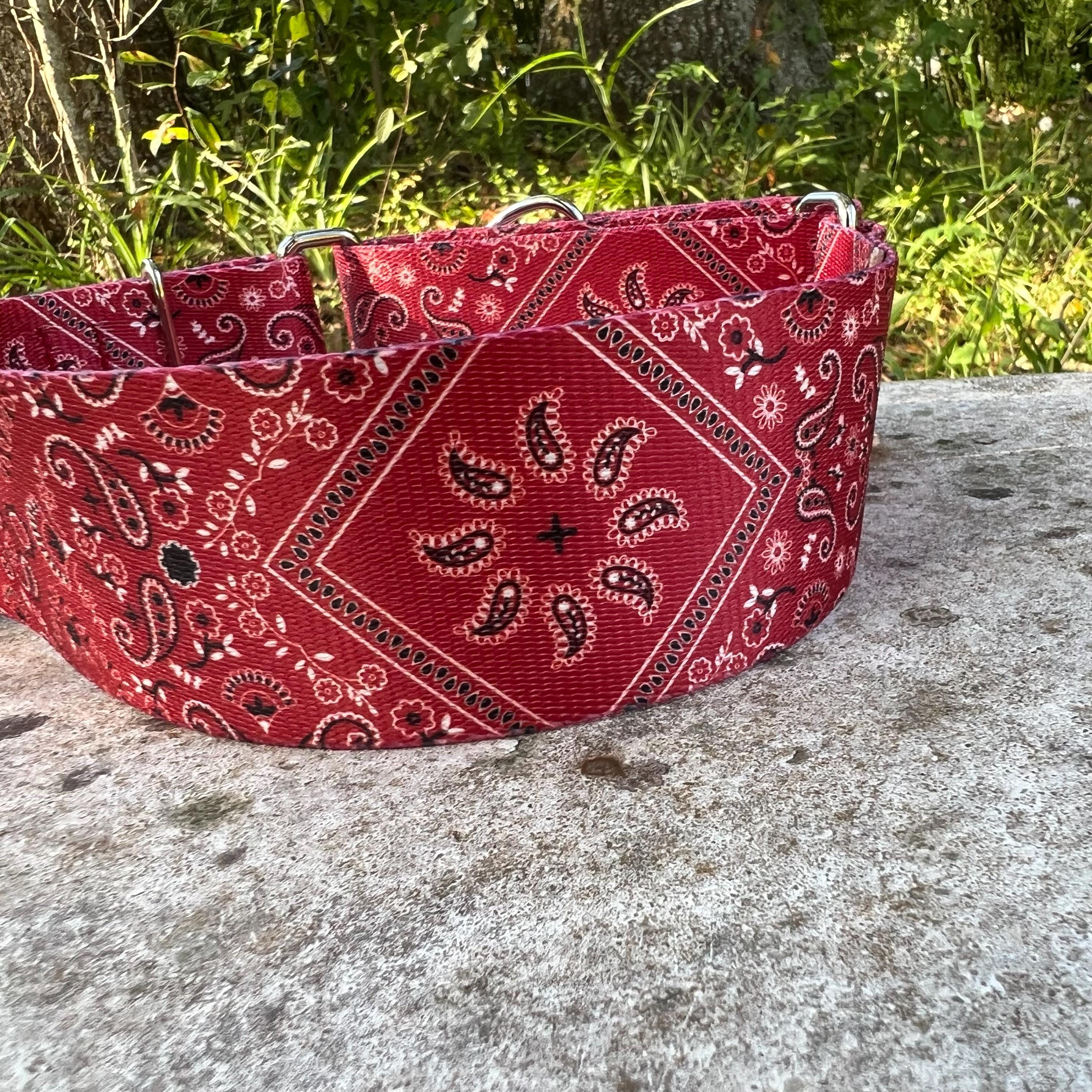 2 Inch Wide Red Bandana Western Print Martingale Dog Collar: Sighthound, Greyhound, Whippet