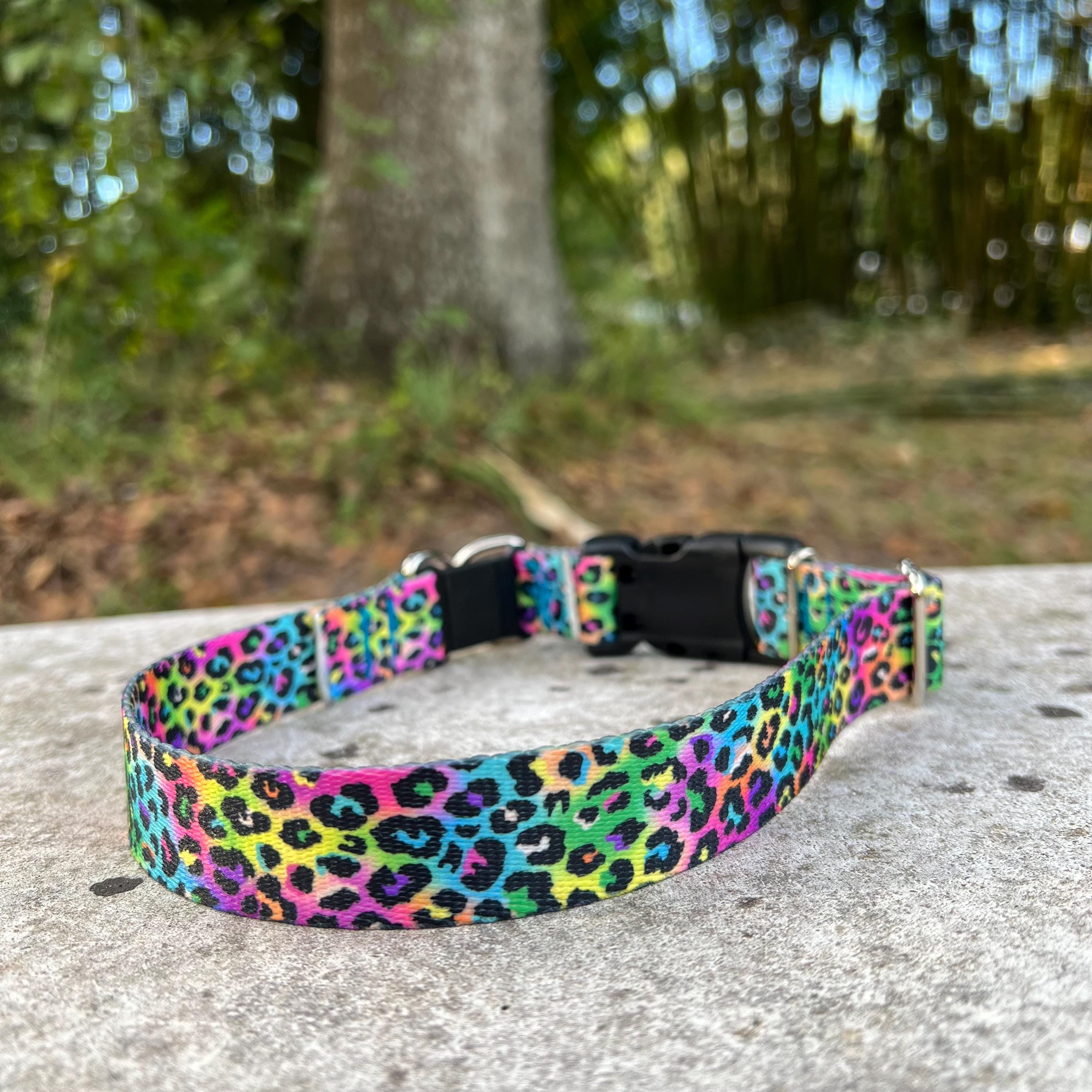 Neon Leopard Print Rainbow Dog Breakaway Collar: Safety Release, 1 Inch Wide