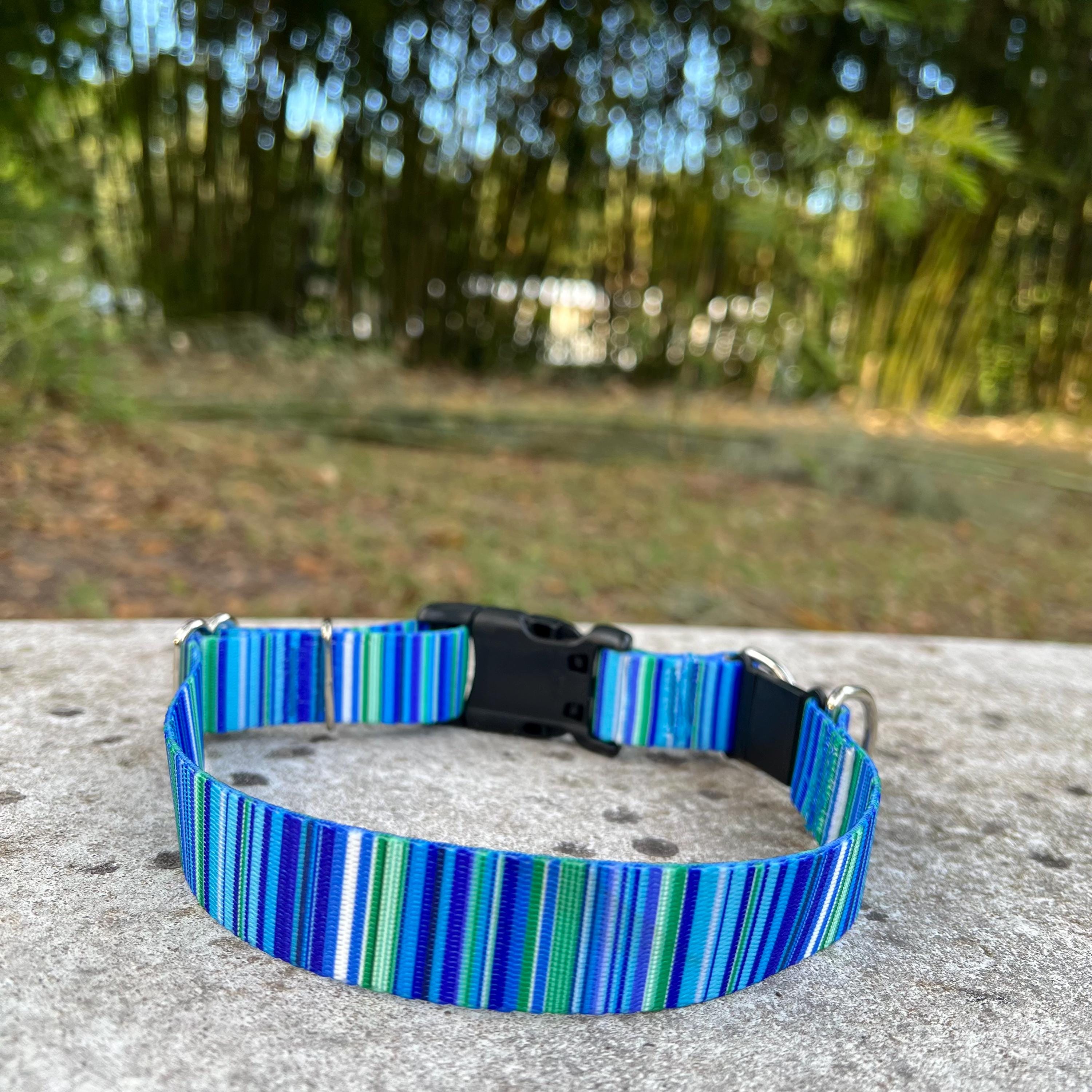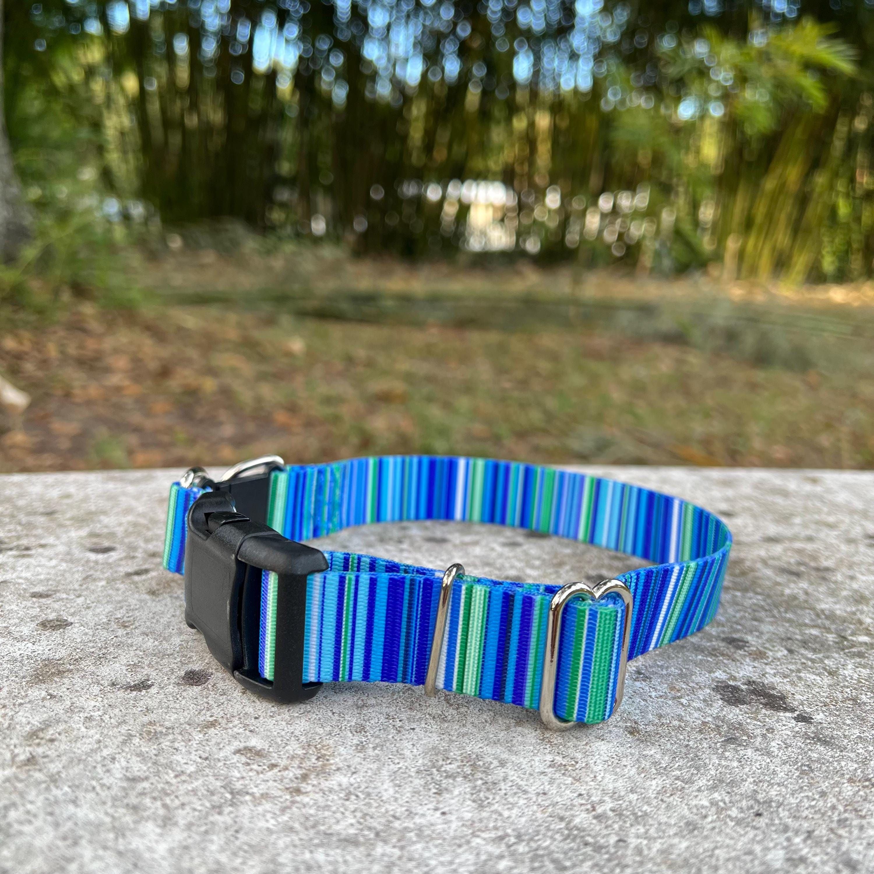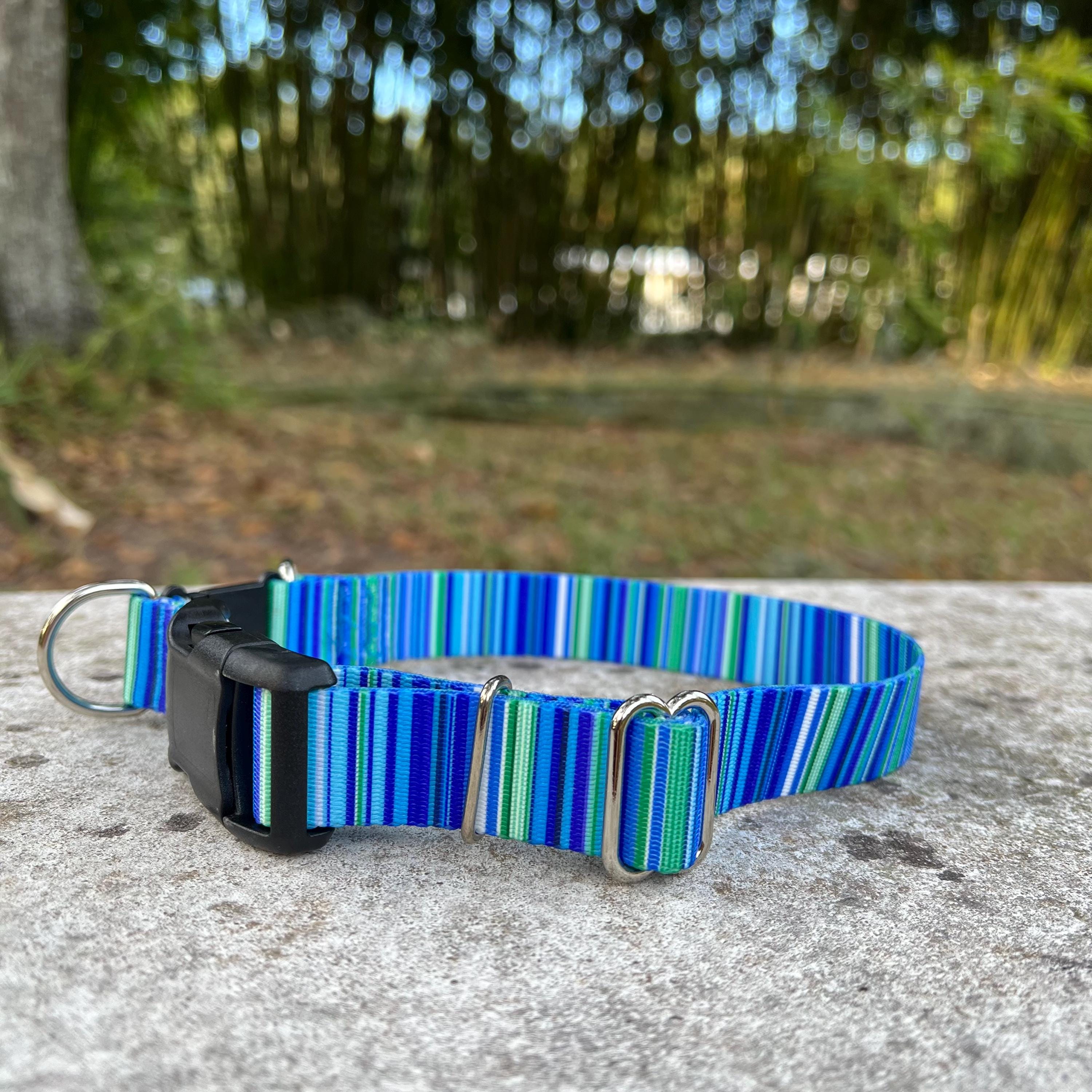 This collar is designed to be a safe option if you need to leave a collar and/or tags on your dog all the time. Clip both D-rings to keep the collar secure for walking. With the D-rings unclipped, the collar will release if it is caught or snagged. This collar has both a standard quick release for easy on/off and a breakaway for safety.