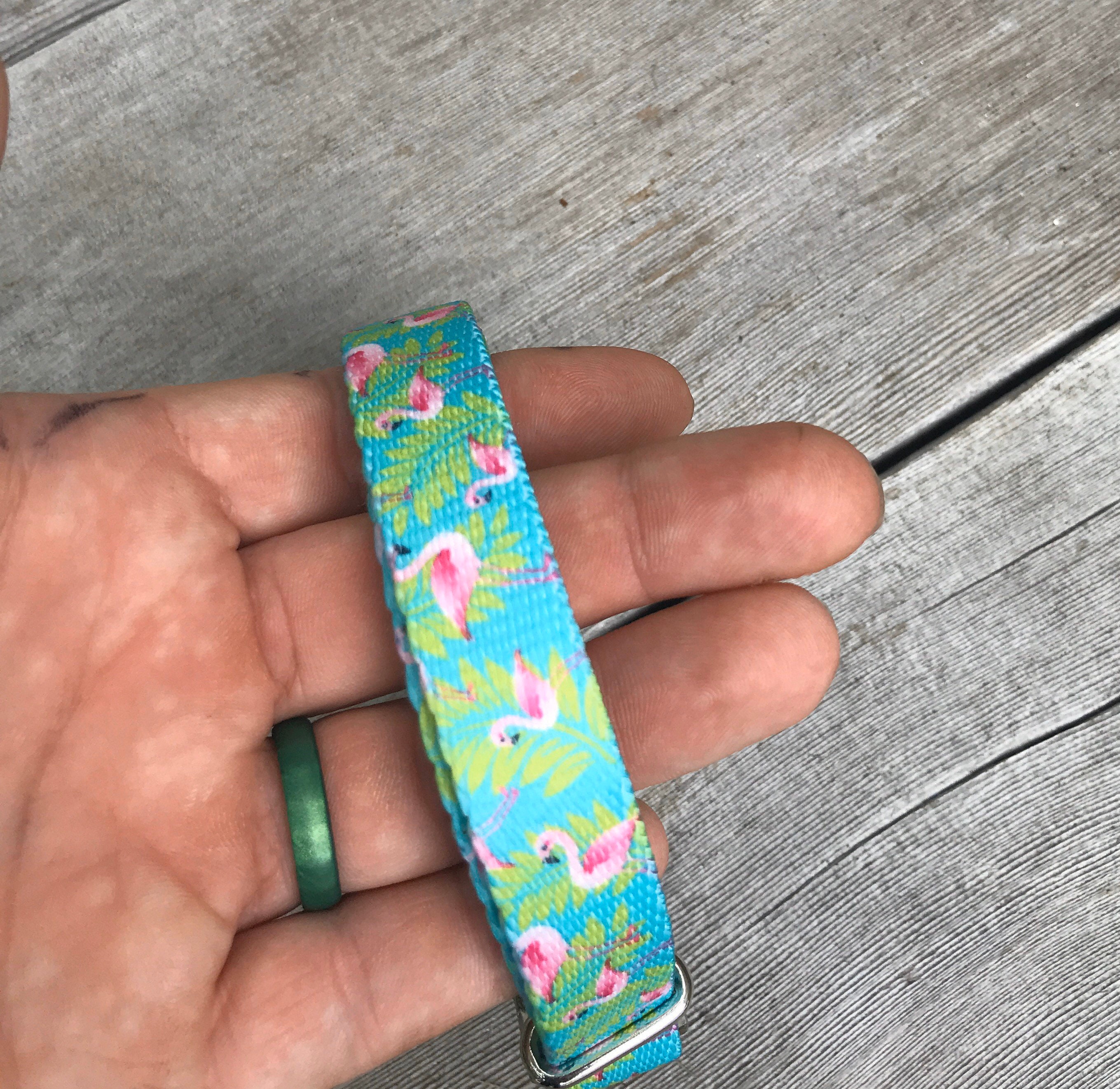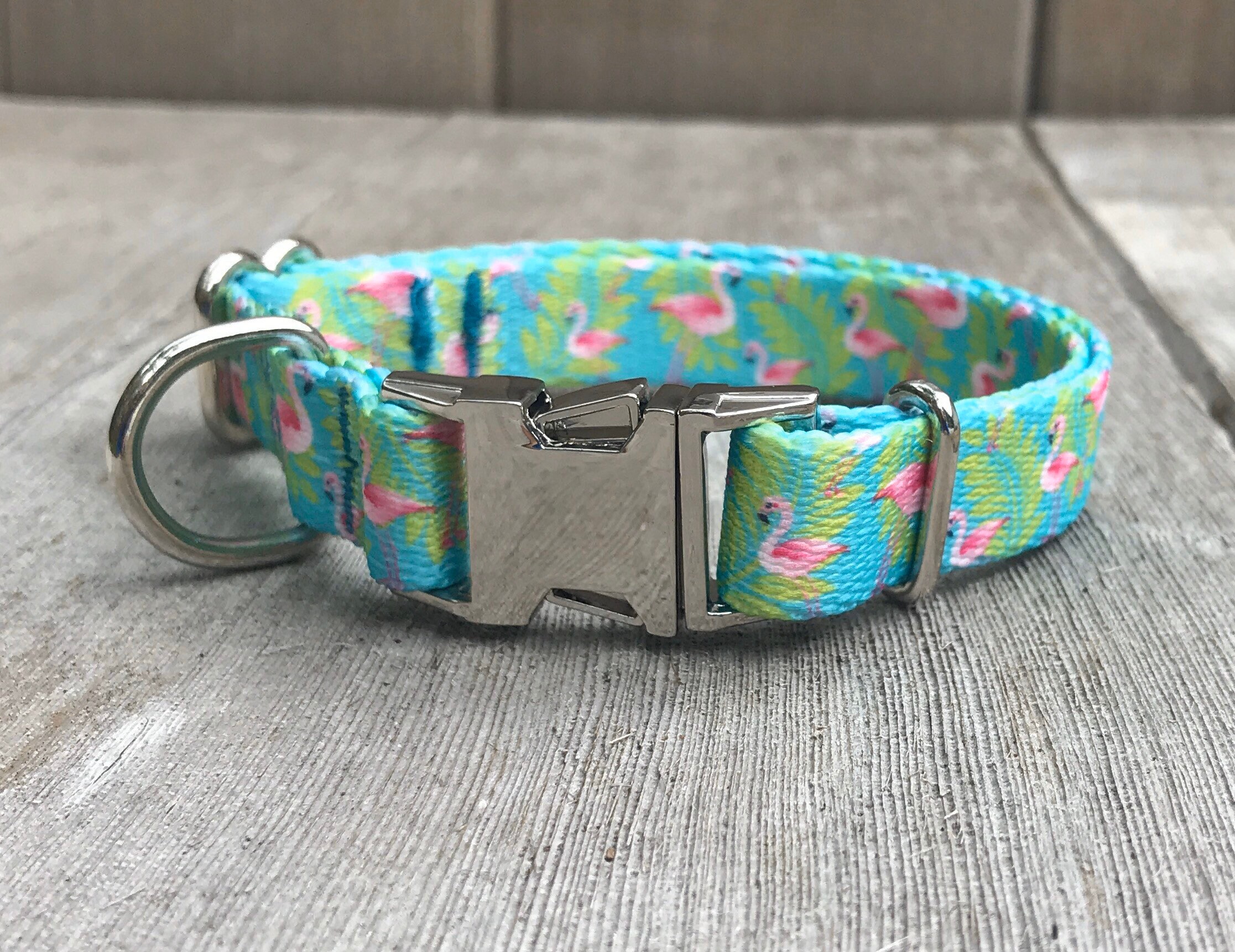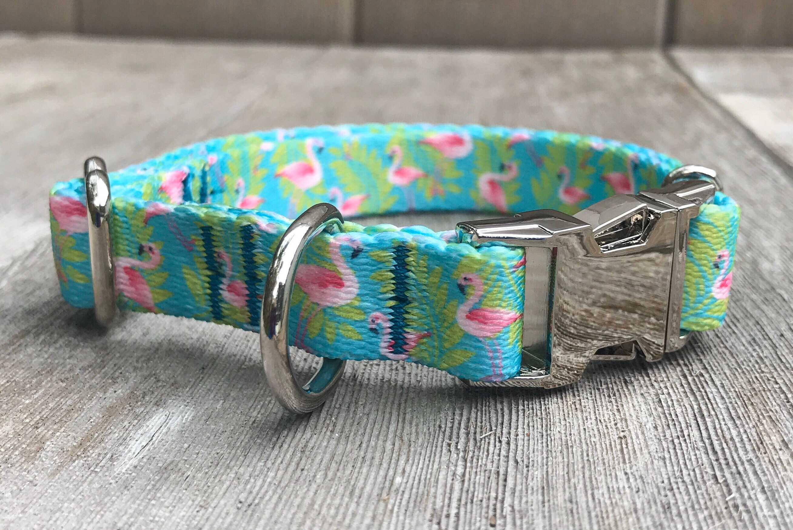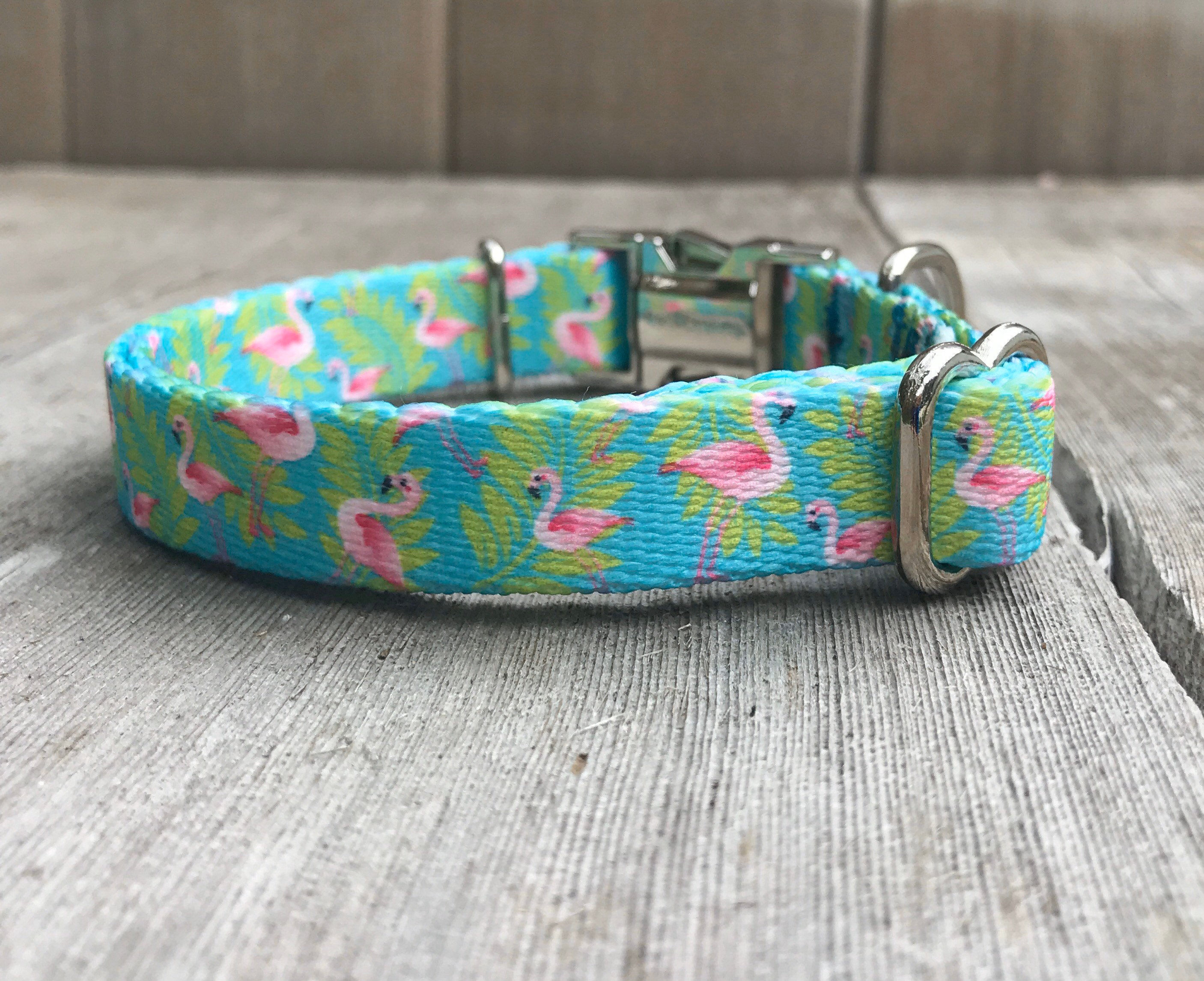 You (and your dog) will be ready for the beach (or a tiki bar) with this tropical flamingo print adjustable collar.