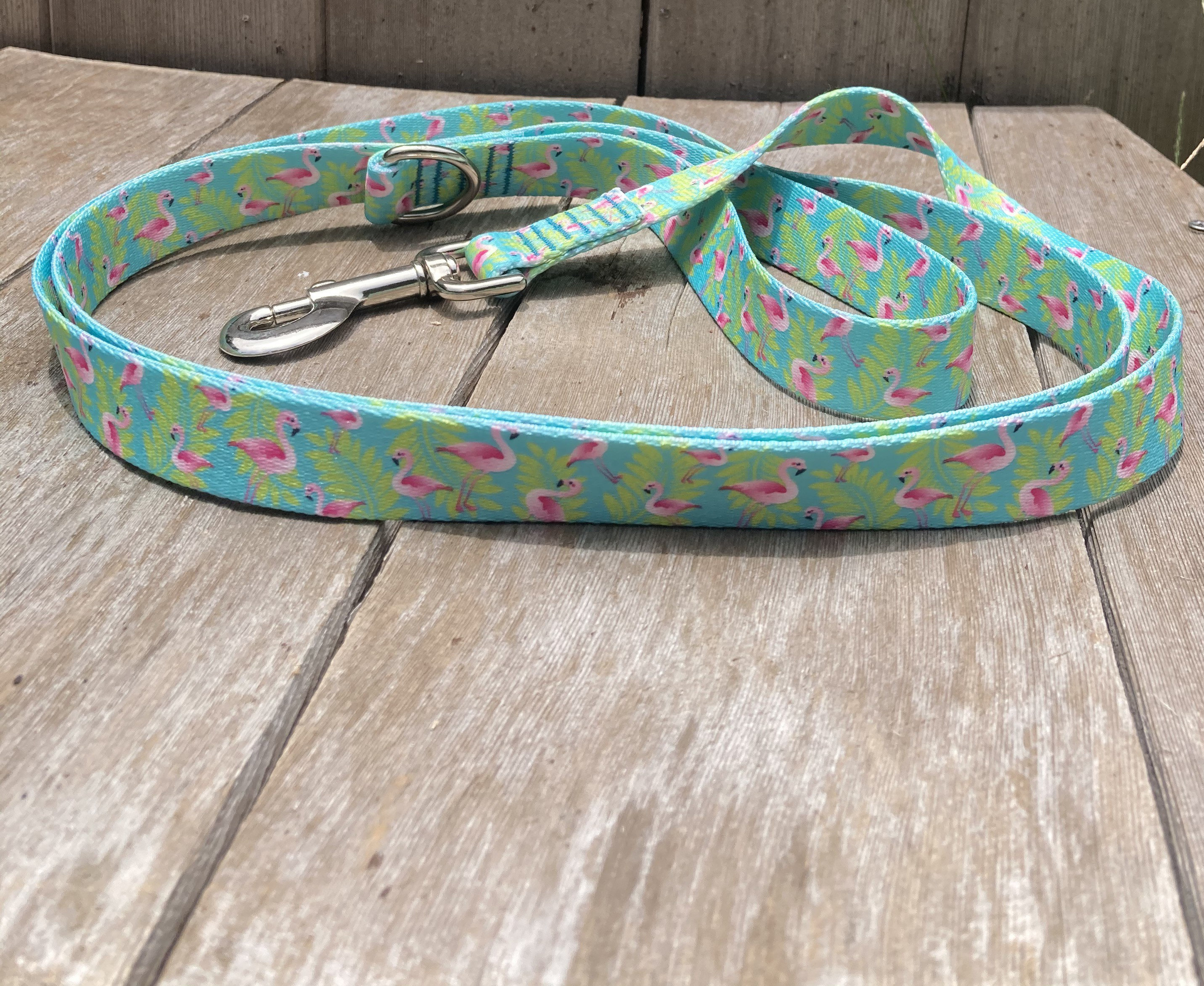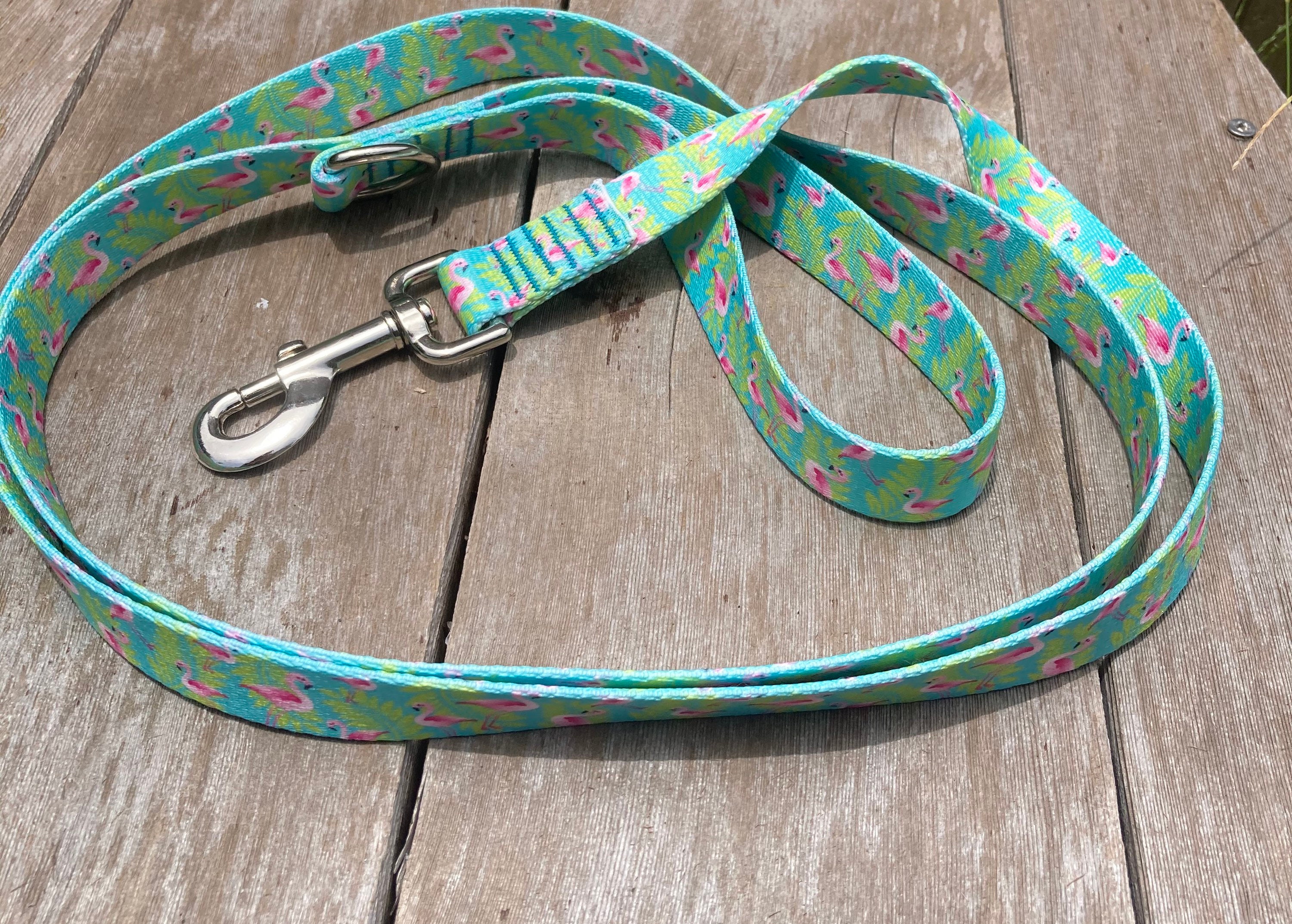 The flamingo print is a match for our flamingo collars.