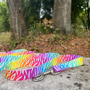 You can choose your length - we have four, six, and eight foot leashes available. Choose between 5/8" wide for a lightweight leash (great for smaller breeds) or choose a wider 1 inch leash for larger dogs.